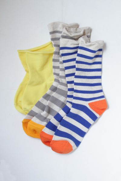 (左から)MOCCHILY SOCKS SHORT¥1,200、STRIPEDWRAP SOCKS各¥1,400