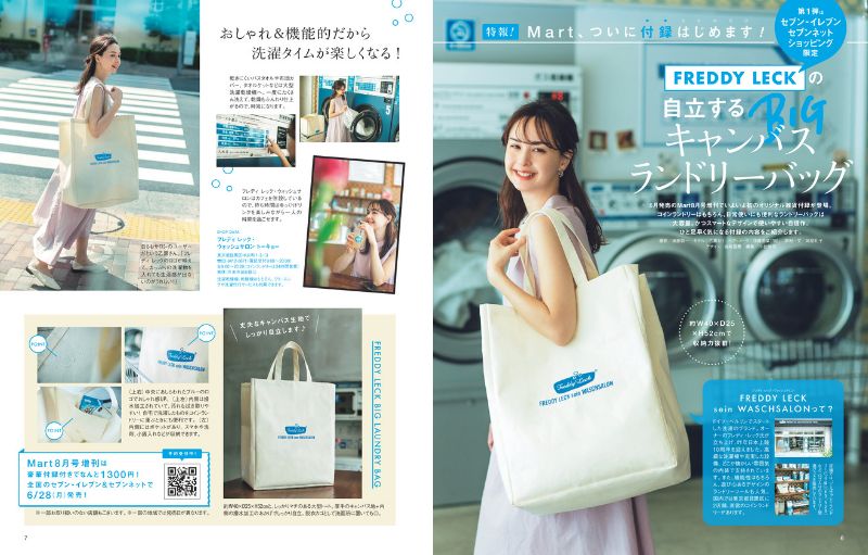8月号予告 特報! Mart、ついに付録はじめます! FREDDY LECKの自立するBIGキャンバスランドリーバッグ