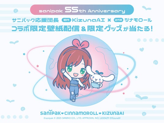 日本サニパック株式会社(本社:東京都渋谷区、代表取締役社長:井上充治、以下 サニパック)は、本日5月28日(水曜)をもって設立55周年を迎えました。55周年を記念し、初代サニパック応援団長を務めてくださった、Kizuna AI株式会社のアーティスト「KizunaAI(キズナアイ)」さん、2代目応援団長の株式会社サンリオのキャラクター「シナモロール」とのコラボ企画を開催いたします。