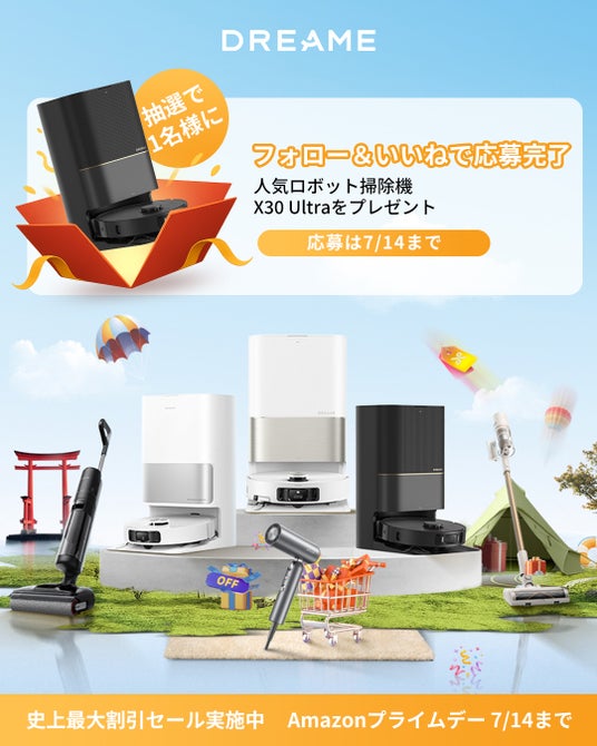 高速デジタルモーター性能世界トップクラス、急成長を遂げるスマート家電の総合メーカーDreame Japan(ドリーミー・ジャパン)株式会社(東京都中央区)は、「Amazon プライムデー」(https://www.amazon.co.jp/primeday)の開催に合わせて、Dreame Amazon公式店にて2025年7月8日(火)から7月14日(月)まで、Dreameの大人気モデルから今年の最新品まで史上最大割引セール・キャンペーンを実施いたします。