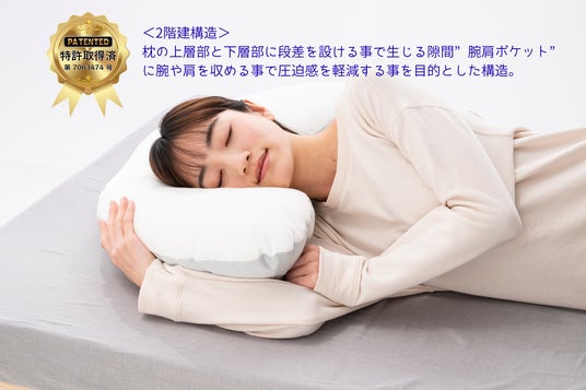 ・横向き寝時の肩や腕に掛かる圧力を軽減する設計(特許取得の2階建構造)