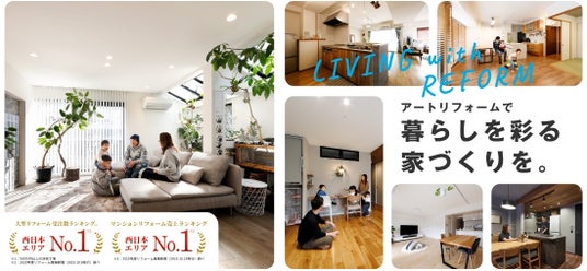 創業70年、年間6500件以上のリフォームを施工し、関東、関西、東海、九州に展開するアートリフォーム。大手不動産仲介会社各社のパートナーとなり、中古物件購入時のリフォームを手掛けるBtoB事業、WEBや折込チラシからの反響顧客に対するリフォーム提案のBtoC事業を展開。利用者数No.1のリフォーム会社サイト「ホームプロ」においては13年連続でリフォーム完了件数西日本第一位、2022年度は完了金額西日本第一位の表彰を受けている。また、2022年度の売上ランキングでは西日本の総合リフォーム店で1位となり、ビジョンである『業界の先頭集団』に向けて成長を続けている。