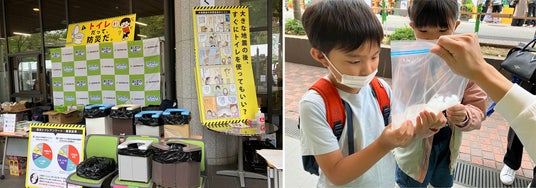 関西大学 × サンコー(防災アイテムを販売)× 地域の方々災害は突然に!親子で楽しく防災を学ぶ!簡易トイレの展示&凝固剤の体験会を実施