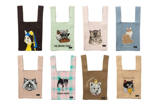 ニットトートバッグ 猫 犬 デザイン マルシェバック 犬 猫 アートデザイン