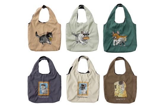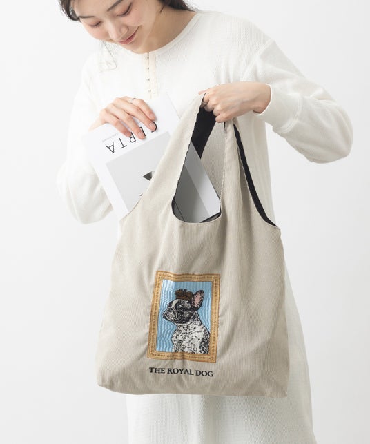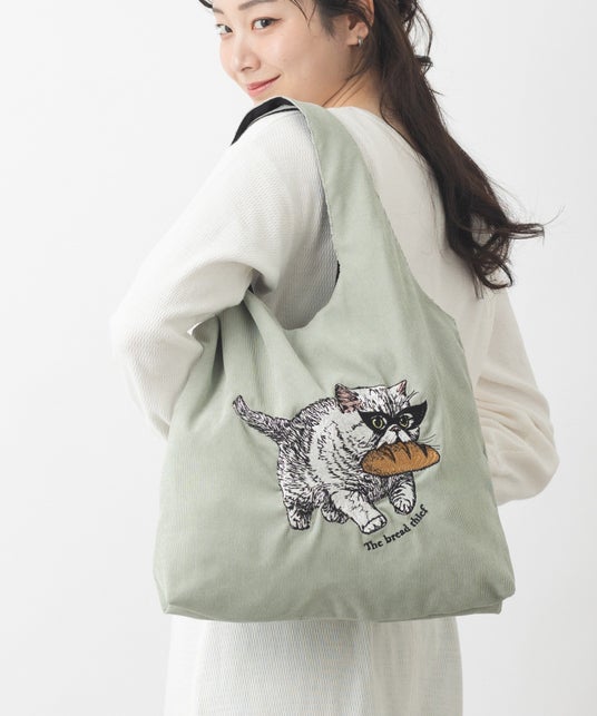 猫犬デザイン刺繍 コーデュロイ トートバッグ