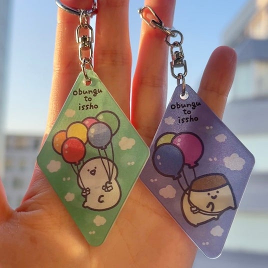 レンチキュラーキーホルダー 全8種:各891円(税込)お文具ひろば限定アートの風船をもったお文具さんたちがユラユラうごく?!