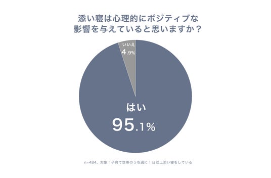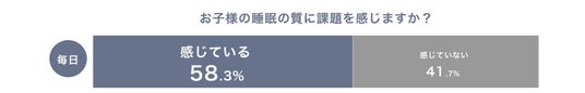 専門家は、その要因のひとつに「添い寝」があると語ります。添い寝をすることで、いびきなどの騒音や寝返りによる振動が睡眠の質を低下させる可能性があるのです。今回のイベントに先立って当社が実施した調査によると、昔から添い寝の文化が根付く日本では、実際に添い寝をしている親子は約7割にのぼり、これは欧米の1割以下と比べても非常に高い割合です。その中で95%の親が「親子の添い寝は心理的にポジティブ」と回答した一方で、毎日添い寝をする家庭の約6割の親が子どもの睡眠の質に課題を感じていると回答しています。