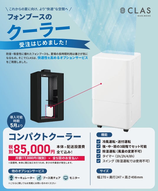 クラスの法人向けオフィス構築「CLAS BUSINESS」にて、フォンブース専用コンパクトクーラーの提供を開始