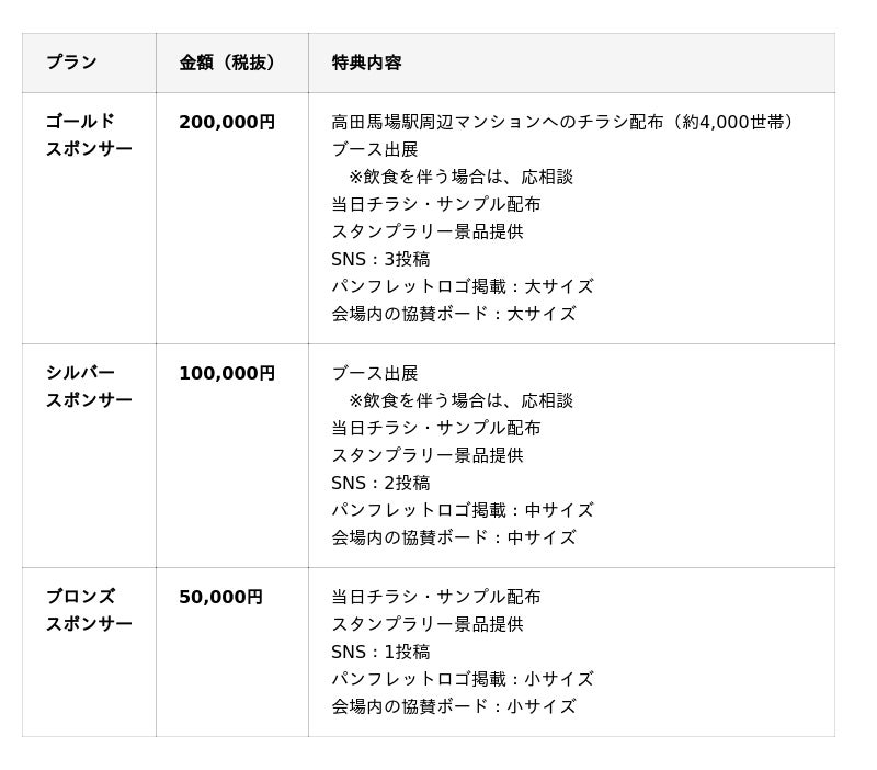高田馬場の魅力再発見と地域活性化を目指し、協賛企業を募集