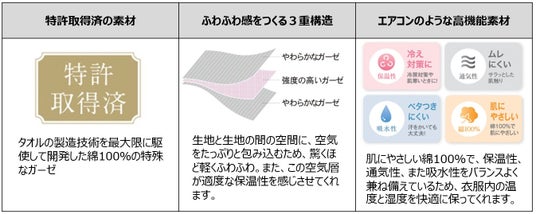 驚くほどの軽さと柔らかさが心地よさを生むだけではなく、高い吸湿・吸水性を備え、汗や水分を素早く吸収して肌を常に快適な状態に保ちます。また、敏感肌の方や赤ちゃんにも安心して使用できる低刺激性を兼ね備えており、すべての工程で使い手の肌への優しさが追求されていることも評価につながりました。