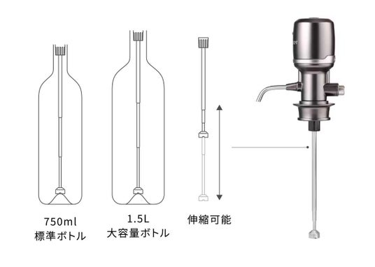 空気の量を調整しながらもワインに均等に触れさせることで。ワインの味をまろやかにし高級レストランで飲む味わいをご自宅で手軽に体験出来ることが魅力です。