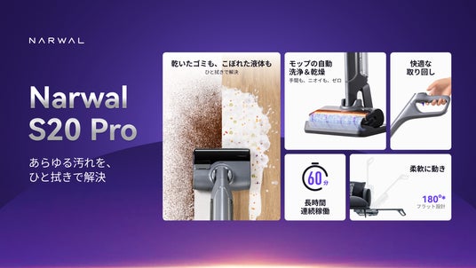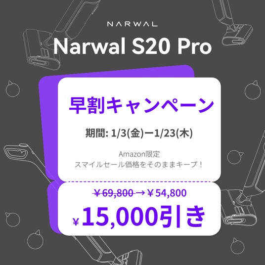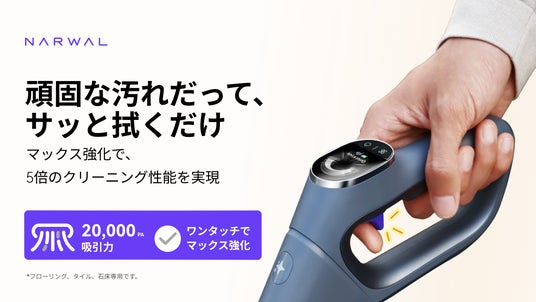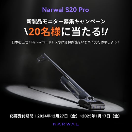 床清掃技術の開発に取り組み続いたNarwal Japanは、1月3日(金)に初のコードレス水拭き掃除機「Narwal S20 Pro」をAmazonで発売します。初回限定価格は54,800円。