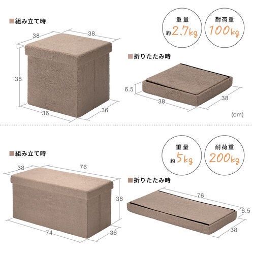 耐荷重100kg(150-SNCBOX15)および200kg(150-SNCBOX16)の頑丈な設計で、日常的に使用する際にも安心です。スツールとしてだけでなく、オットマンや足置き台としても使用できます。耐久性が高く、長く使えるので、コストパフォーマンスも抜群なアイテムです。