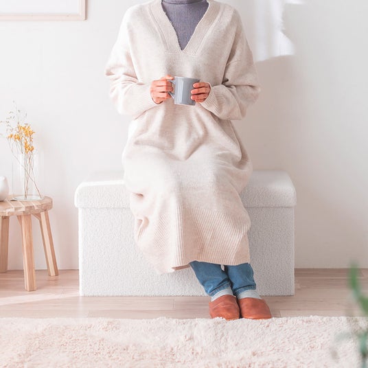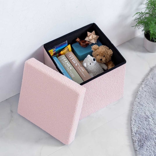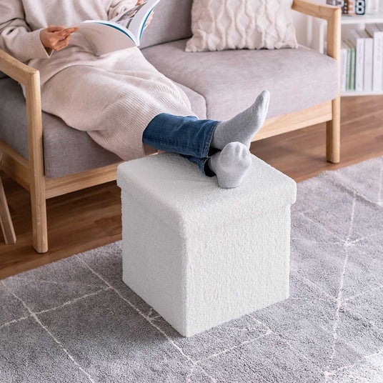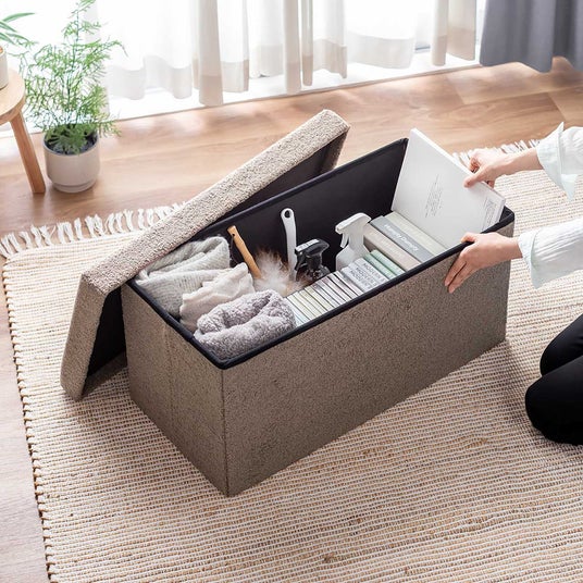 小物をスッキリ収納できる、ボア生地で座り心地抜群な収納スツール