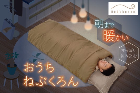 お家で使う、寝袋のようなファスナー付き布団。しっとりもっちり生地がリニューアル!寒い冬、寝具が冷えていませんか?寒さ対策に「おうちねぶくろん」はいかが?