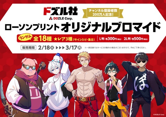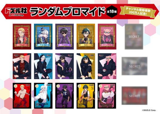 ローソンプリントにて、ドズル社チャンネル登録者数200万人を記念したオリジナルブロマイド[全18種/内レア3種]を販売します。