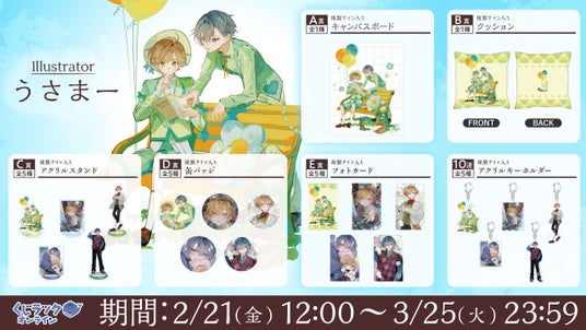 イラストレーター『うさまー』が「くじラックオンライン」に登場!新規描き下ろしなどの豪華オリジナルグッズがハズレなしでゲットできる!2025年2月21日(金)より発売開始!