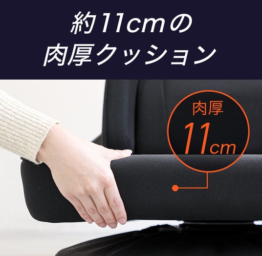 高密度ウレタンクッション:11cmの厚みで長時間の使用でも疲れにくい。