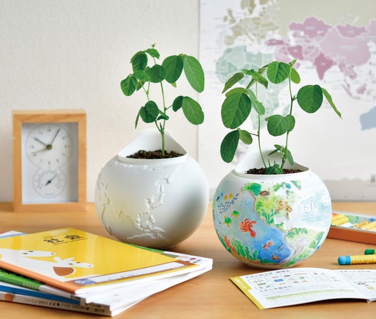 [瀬戸焼職人たちの手仕事]陶器製の地球で大豆を育て、世界の食糧問題を考える教育型栽培キットを発売。瀬戸工科高校の学生とのコラボ商品。