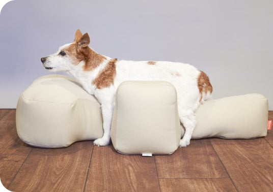 ワンちゃんの姿勢は四つ足で立つことが基本。生活の全てがその姿勢に合わせるのが自然になってます。リラクッションはそんな基本の姿勢をシニア犬になってもなるべく長い時間させてあげられます。