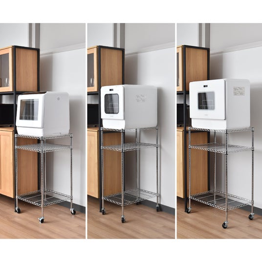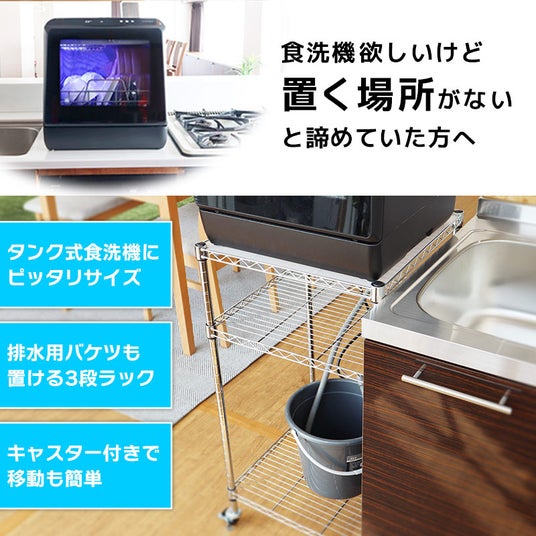 本製品は、タンク式食器洗い乾燥機を気軽に設置できるスチールラックです。