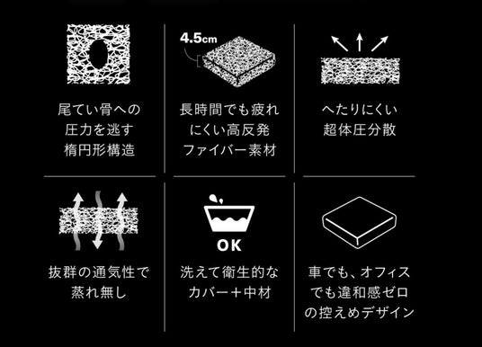 ZABUSHIONは、長年の座り仕事でお尻や腰に違和感を抱え、さまざまな製品を試しては失敗してきた代表・松岡が、同じ悩みを持つ方々のために2024年6月に立ち上げたクッションブランドです。体圧分散性と通気性に優れた日本製高級ファイバー素材を採用し、試行錯誤の末にたどり着いた独自の弾力を持つ超極厚カットで、従来製品のヘタリや底付き感、ムレを軽減。長時間座っても違和感が少なく、正しい姿勢を長くサポートし、腰への負担も和らげる工夫が施されています。