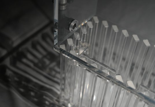 すべての面に丁寧な手磨きを施し、アクリルの透明度を最大限引き出すことで、水槽全体が光の彫刻のように輝きます。