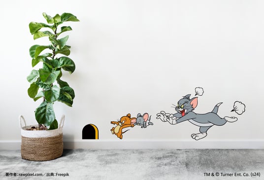 お部屋の中でトムとジェリーが駆け回るシーンが再現いただけます。