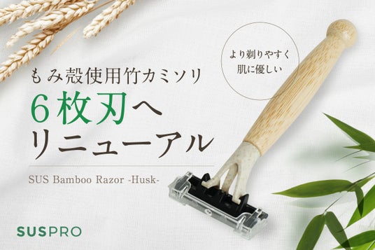 オリジナルグッズを制作するアイグッズ株式会社(本社:東京都渋谷区)は、ホテル・旅館向けエコアメニティを展開するSUS amenity(サスアメニティ)ブランドより、竹ともみ殻を使用した『SUS Bamboo Razor -Husk- (もみ殻使用 6枚刃竹カミソリ)』を、2025年4月下旬よりリニューアル発売します。
