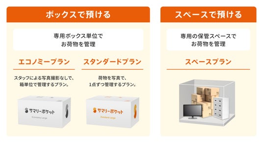 サマリーポケットは、専用ボックスに預けたい荷物を詰めて送る、月額1箱330円から利用可能な荷物保管サービスです。預けたアイテムを1点ずつスタッフが撮影した写真で管理できるプランや、箱単位での管理できるプランがあります。荷物の出し入れは全国一律料金で、Webから集荷・配送の依頼をするだけで完結します。サマリーポケットでお預かりする荷物は、寺田倉庫・三菱倉庫と提携した信頼できる管理体制のもと、徹底した空調とセキュリティ管理を行なった保管センターで、厳重にお預かりします。