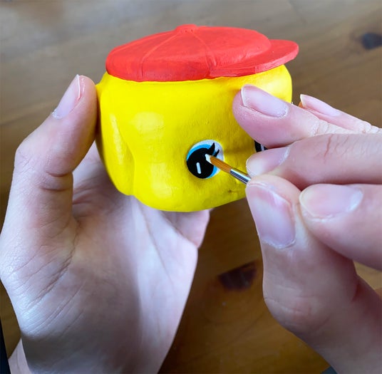 張り子のフエキくんに彩色する様子