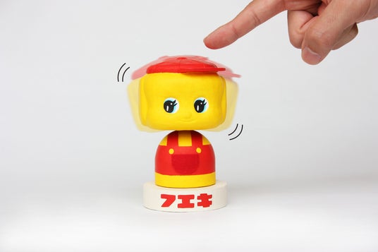 不易糊工業株式会社のキュートな容器でおなじみの「どうぶつのり」から生まれたキャラクター「フエキくん」の頭を張り子で表現した首振りの人形が登場!
