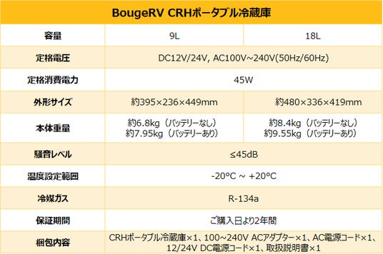 コンパクトで持ち運びやすいデザインを実現、BougeRV CRHポータブル冷蔵庫新登場!