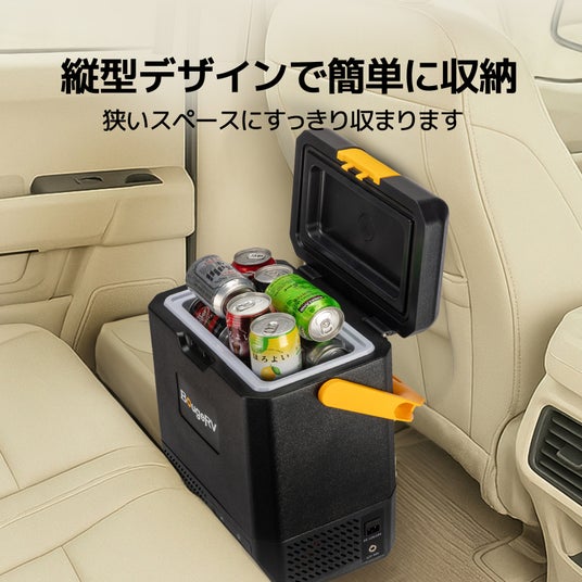2.縦型デザイン CLBポータブル冷蔵庫とは違い、縦型デザインを採用しているため、車内での設置場所に悩むことがありません。センターコンソールや助手席、後部座席の間など、狭いスペースにもスムーズに収納できるので、車内のスペースを効率良く活用できます。