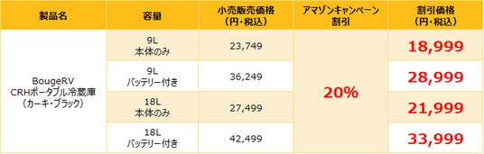 アマゾンでは、CRHポータブル冷蔵庫を特別に20%OFFの割引価格で約一週間限定で販売いたします。この期間中は、通常価格よりもお得にご購入いただけます。ご興味のある方はぜひ、この機会をお見逃しなく。