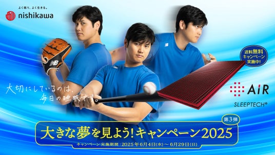 西川株式会社(東京都中央区日本橋富沢町、社長:菅野達志、以下、nishikawa)は、大谷翔平選手を起用した「大きな夢を見よう!キャンペーン2025」第3弾を、6月4日(水)~6月29日(日)の期間中に実施いたします。