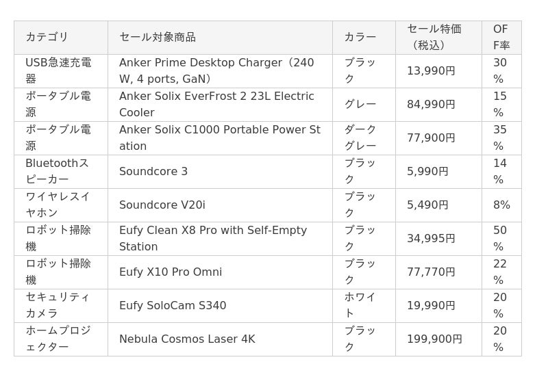 ● 主なセール対象製品(一部抜粋)