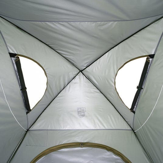 プライバシーをしっかり守るために、室内が透けないシルバーコーティング生地を採用。メッシュ素材の大型採光窓を備えており、避難所生活で不足しがちな陽の光を入れ、風通しの良い空間を実現。