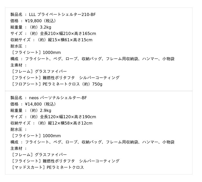 災害時や避難所での生活において、安心してプライベート空間を確保できるシェルター「LLL プライベートシェルター210-BF」「neos パーソナルシェルター-BF」を、防災アイテムやアウトドアグッズとして、ぜひともご活用ください。