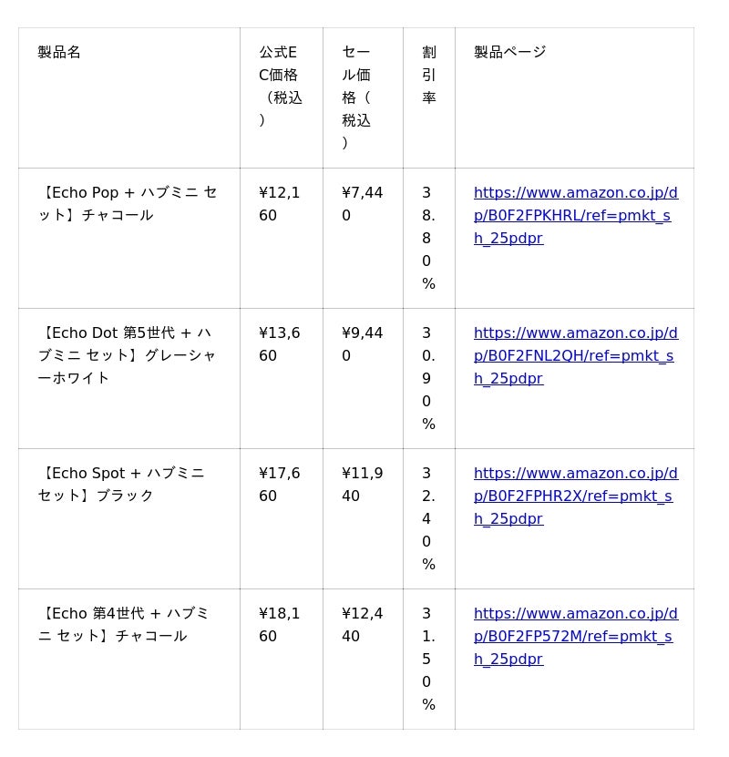 【Amazon Echo | SwitchBot お買い得セットセール価格(一部抜粋)】