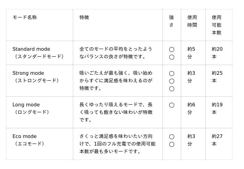 加熱式たばこの味・吸いごたえに対する、お客様の多様なニーズにお応えするために、4つの加熱モードを用意しました。