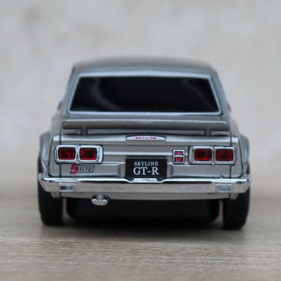 ミニカーのような見た目のマウスは、細部のディティールにまでこだわった仕上がりで、ヘッドライト・リアライトも点灯するという本格的な仕様。使わない時はデスクに手のひらサイズのミニカーとして飾っておくことができます。「ハコスカ」の愛称で呼ばれ、今も根強いファンの多い名車のディティールをデスクの上でじっくりお楽しみ頂けます。