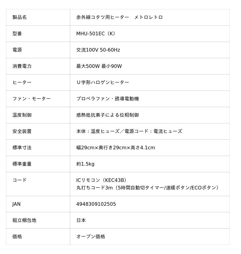 大正2年創業、昭和38年よりコタツ用ヒーターを手がけるメトロ電気工業株式会社(本社:愛知県安城市、以下:当社)は、昭和100年を記念し、かつて多くの家庭をあたためた“赤く光るコタツ”を現代に再現した赤外線コタツ用ヒーター「メトロレトロ」限定300台を発売いたします。