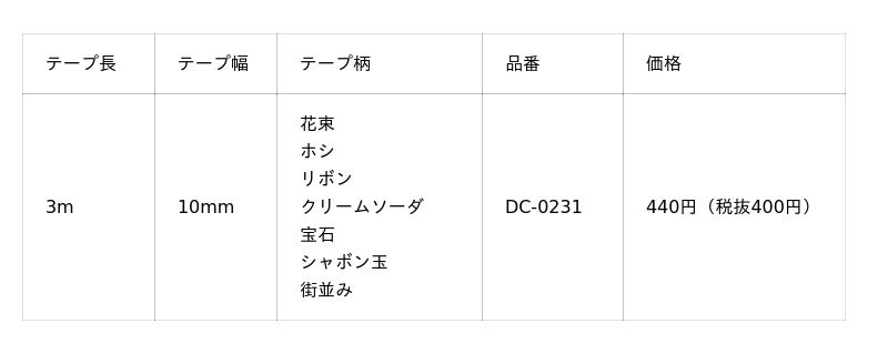 ラインアップは、「花束」「ホシ」「リボン」「クリームソーダ」「宝石」「シャボン玉」「街並み」の7柄。メーカー希望小売価格は440円(税込)です。