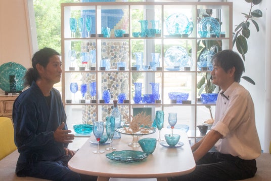 透き通った海を切り取ったような、美しいエメラルドグリーンのガラス仏具『水影』。琉球ガラスの職人が一点ずつ吹き上げ、この唯一無二の模様を生み出しています。職人・友利龍氏へのインタビューと、波模様が浮かび上がる制作風景を収録しました。
