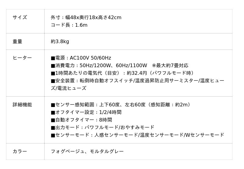 本製品は、人感センサーと室温センサーの2つを搭載しております。人感センサーは人の動きを感知し、自動で運転のON/OFFを切り替えることにより、消し忘れ防止になり、また効率的に暖まることが可能です。