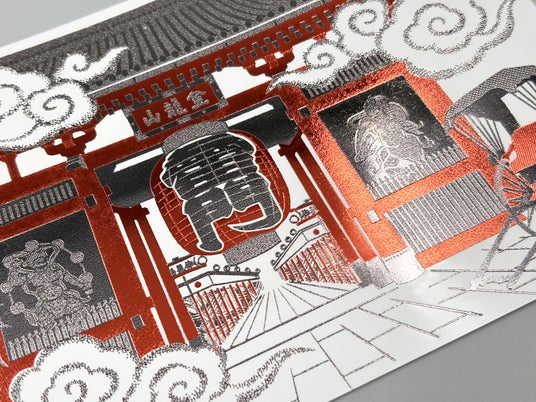 雷門 箔押しポストカード