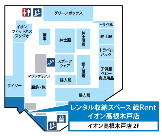蔵Rentイオン高根木戸店は、イオン高根木戸店2階へ出店し「部屋の収納スペースが足りない」「趣味の品を大切に保管したい」といったお客さまのお悩みの解決をお手伝いいたします。