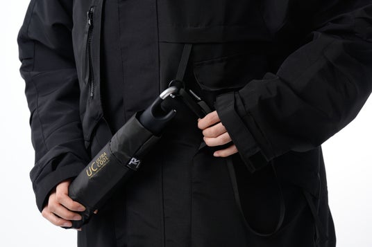 専用ケースと水平可動式カラビナにより、傘をバッグの中に入れず外付けできます。濡れた傘をしまうストレスや、バッグの容量を圧迫する問題をまとめて解決します。