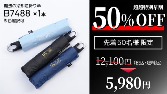 【雨でも汗でも濡らさない】1秒収縮×-13℃冷却×逆折り式『魔法の冷却逆折り傘』がMakuakeにて先行販売開始
